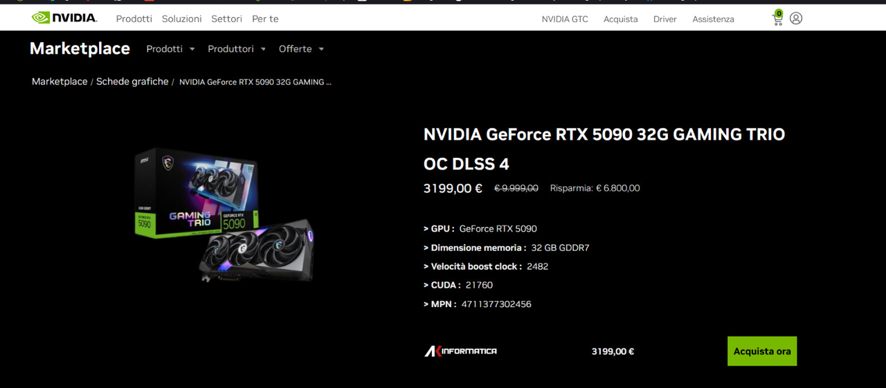 vabbè dai, meno male che c’è Nvidia che sul sito ufficiale mette in risalto delle offerta veramente vantaggiose, 6800 euro di sconto sulla 5090!!1!1!